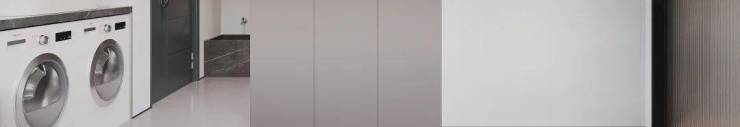 洗衣房以深灰、浅白为调,构建秩序感与质感兼具的实用场域。一体化柜体藏纳清洁工具,隐藏式设计让视觉简洁。洗烘一体式布局高效,台盆适配手洗需求,暗藏灯带点亮操作区。深灰门板与浅白墙面对话,玻璃移门划分空间又保通透,将洗衣琐事融入意式轻奢美学,让家务动线流畅,成为家的 “隐形高效角” 。