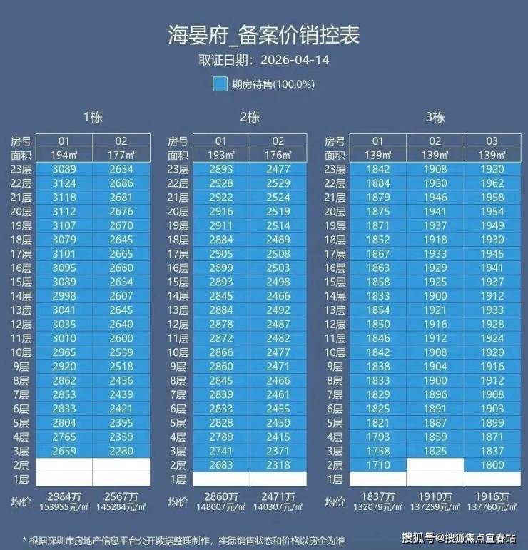 据最新消息:年度单价地王「招商·海晏府」已取证,备案价高达14.2万,建面约139-194㎡!备案总价1710-3124万!折扣暂未确定!当初2023年隔壁限价盘天健悦湾府,深业云海湾限价9.2万,如今过去三年时间同地段,由于是新国标限高限容积率,加上有个海景,品质确实也做的更好了,但是涨价5万一平米,你觉得值得吗?其实现在深圳豪宅定价都是一个比一个贵,重点还卖的很好,因为产品确实比以往的做的也更好了
