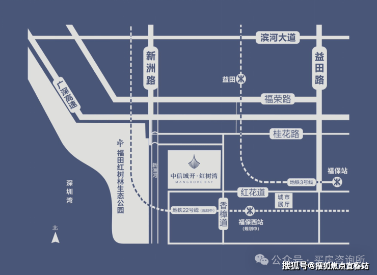 同时,毗邻香港北部都会区及福田CBD,向西对望深圳湾后海豪宅板块,地缘优势出众。