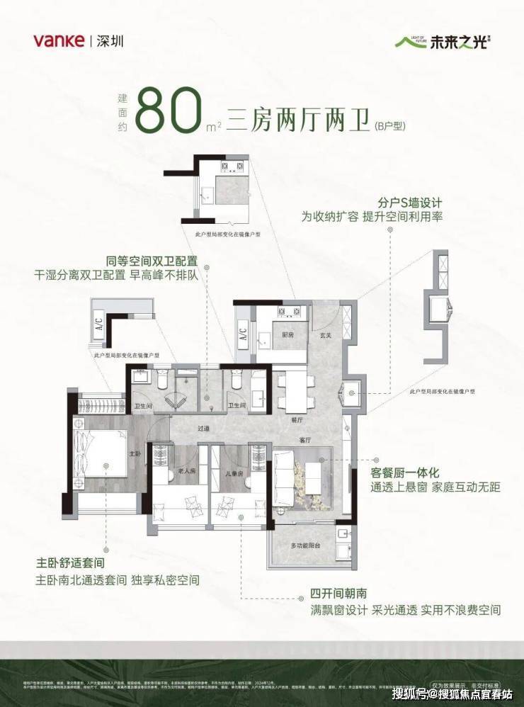 💎建面约80㎡B户型3房2卫