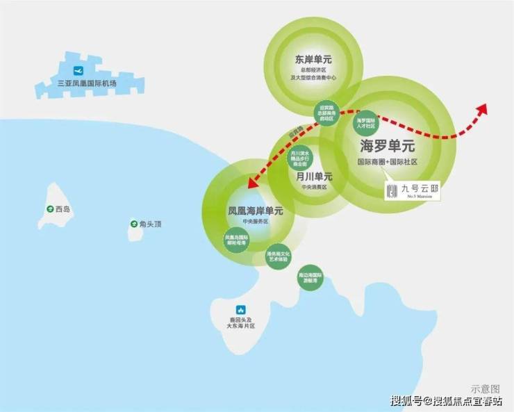 从地形地势上看,鹿回头-凤凰岭-海螺岭-金鸡岭,构成龙形走势,故此,九号云邸就坐落在三亚的龙之脉,是风气绝佳之地。这里既有可俯瞰整座城市的三亚至高峰凤凰岭,又有三山环抱的九号云邸,这一片区域,与香港的太平山、台湾的阳明山何其相似。