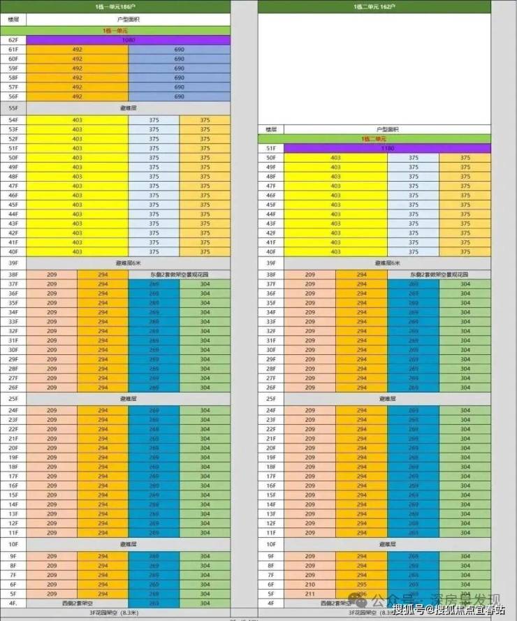 超高区58F起(200米以上)是约500-700㎡顶级大平层