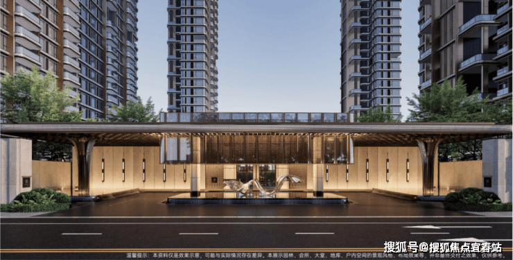其中,南地块主入口高约10米,宽约56米,华盖顶的设计,象征财气聚而不散。
