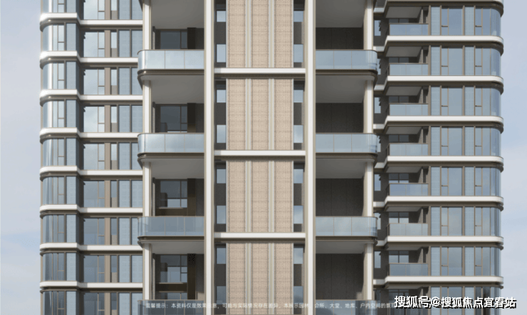 外立面以香槟金搭配大面积的弧形玻璃,形成镜面质感,未来将与临江大道项目共建豪宅天际线。