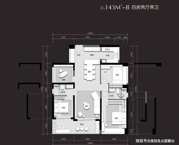 建面约143㎡全能四房: