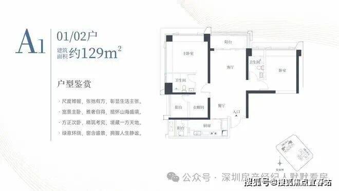 1栋一单元A1、A2户型:面积约为129㎡
