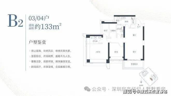 1栋二单元B2户型:面积约为133㎡
