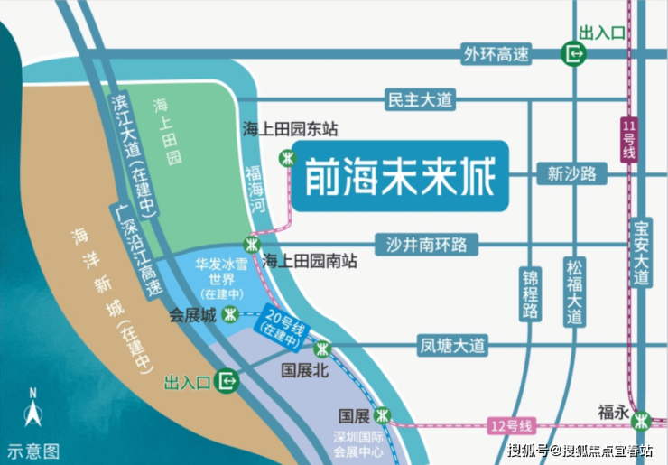 卓越前海未来城,家门口就是12号地铁线“海上田园东站”,一期是最靠近地铁站的,2站到国展北站可以换乘20号线,6站到福永站还可以换乘11号线,快速通达宝中,南山区。