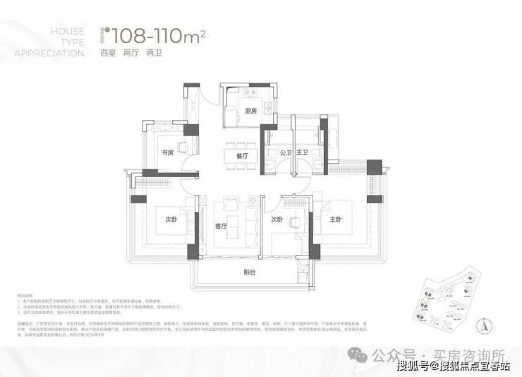 110㎡户型使用率约78.1%,抛去墙体+飘窗+全部阳台使用率达到85.5%