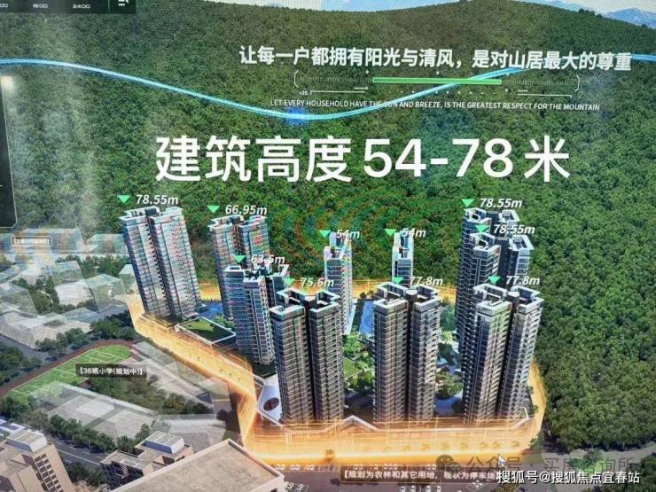 观山海家园规划建设用地面积42407.29㎡,计容建面约11.3万㎡,由8栋塔楼和2栋板楼围合布局,总层高17-25层,规划用户数870户,容积率2.75,车位地下987个;