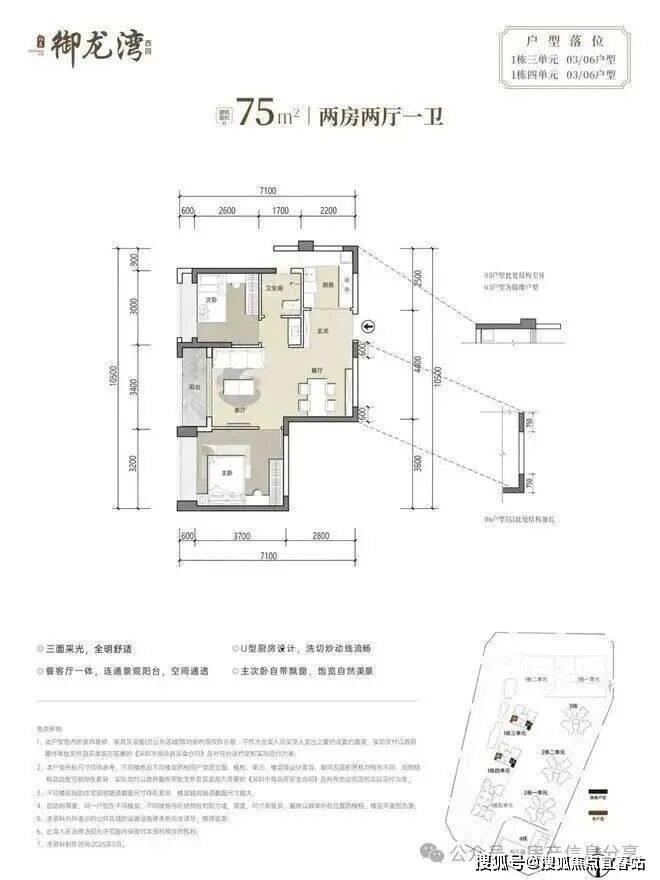 我们这个楼盘是深圳龙华区一个建面约60万平的大社区,分东西地块开发,目前首期开盘的是西地块的房源,在售的户型:65-75平的2房,都是双龙抱珠的格局,而且是30层以内的住宅,使用率做的不错。