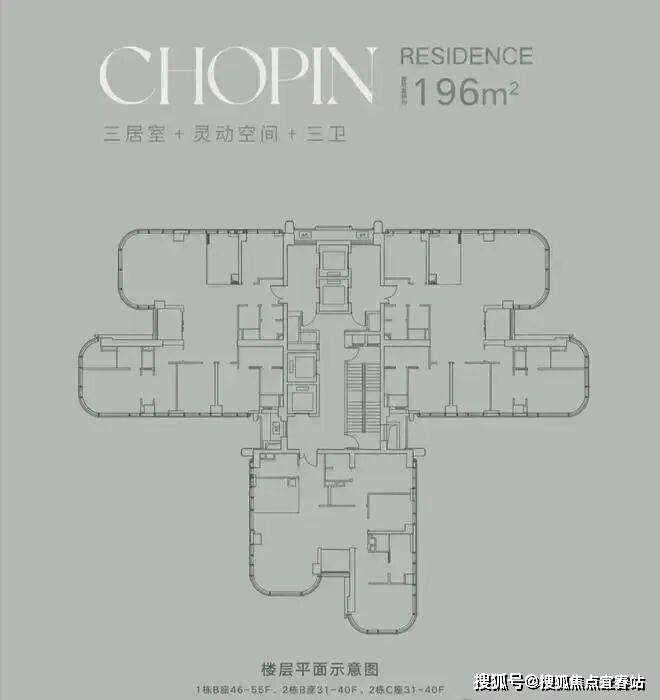 户型面积段设计为196-252-328㎡3-4房和400-600㎡顶层复式