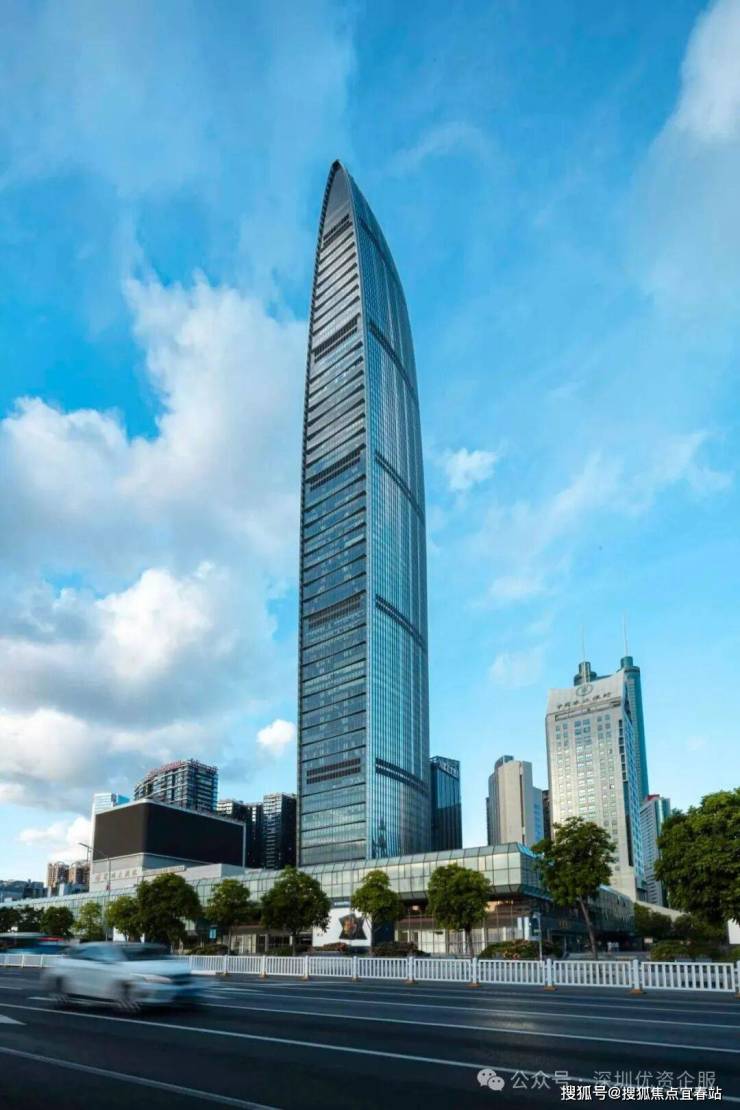 京基100大厦简介:京基100大厦坐落于深圳市深南东路5016号,地处深南大道首排。项目总计容建面60万㎡,包含约52.5万㎡办公、4.6万㎡酒店(瑞吉酒店铂金五星级酒店)、8.35万㎡商业,是集合办公、酒店、商业于一体的垂直商务地标。