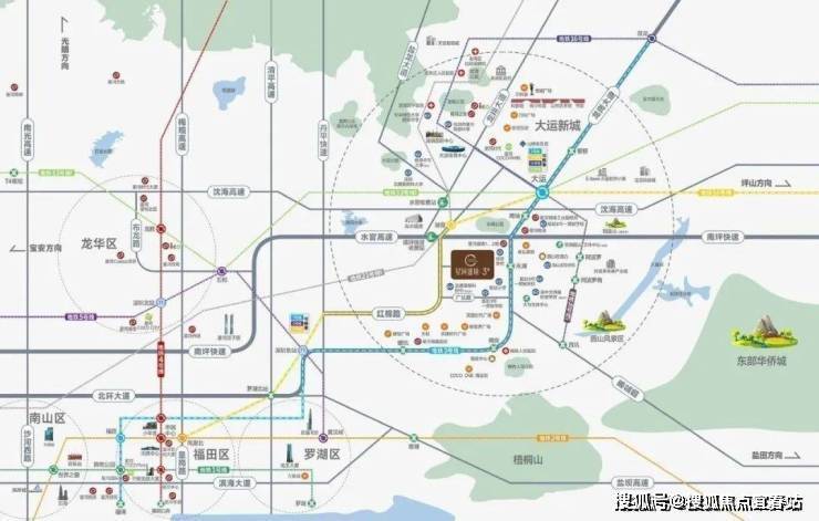 项目坐拥便捷交通网络,实现高效通勤:临近3号线永湖站(2站直达大运、8站抵罗湖)、14号线坳背站(1站大运、5站罗湖、6站福田),规划中21号线坳背站可4站直达坂田、8站通达南山;大运站可换乘规划中33号线,未来7站抵达机场东。周边“五纵四横”路网环绕,水官高速距项目约800米,快速衔接全城。