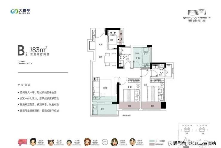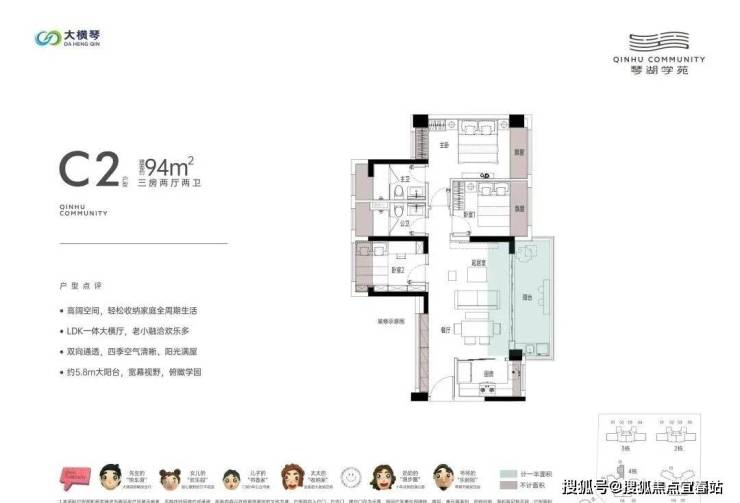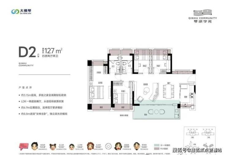 在琴湖学苑,大横琴超越性地打造了3.15-3.3米区间层高。相比市场主流的2.9米层高,琴湖学苑高出约0.25-0.4米,为家庭生活拓展更大想象空间,延伸更丰富的互动场景。