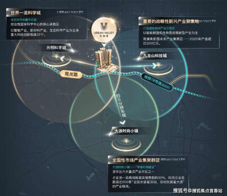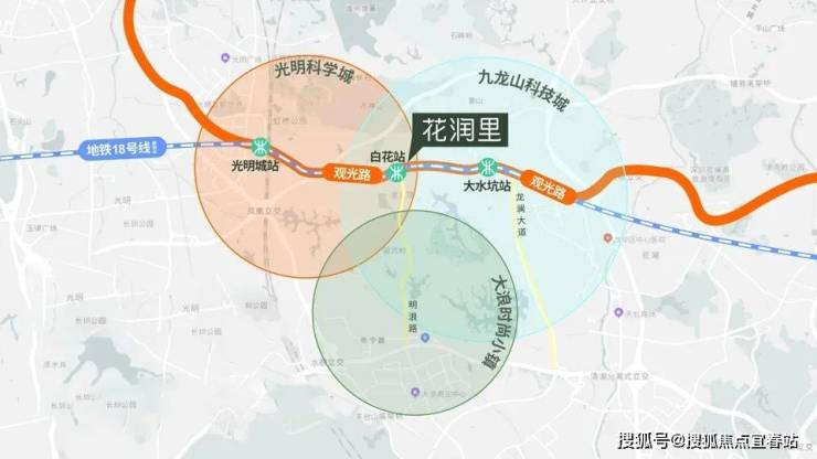 毗邻观光路、外环高速、地铁18号线(规划中)、光明高铁多维立体交通。