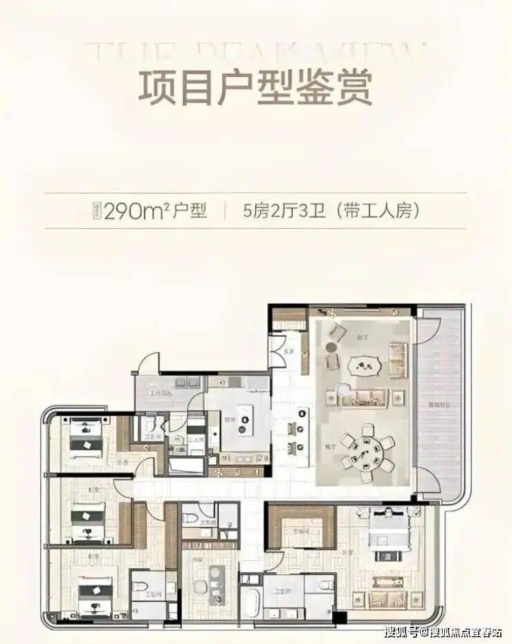 290㎡的五房两厅四卫大户型,配备独立书房和景观阳台,预留了充足的家庭活动空间。
