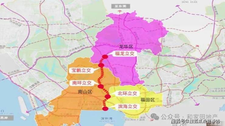 二期工程:衔接福龙路和在建侨城东路北延通道的互通立交,主线北起深华快速路,南接侨城东路,新建匝道6条,建成后快速通达南山。