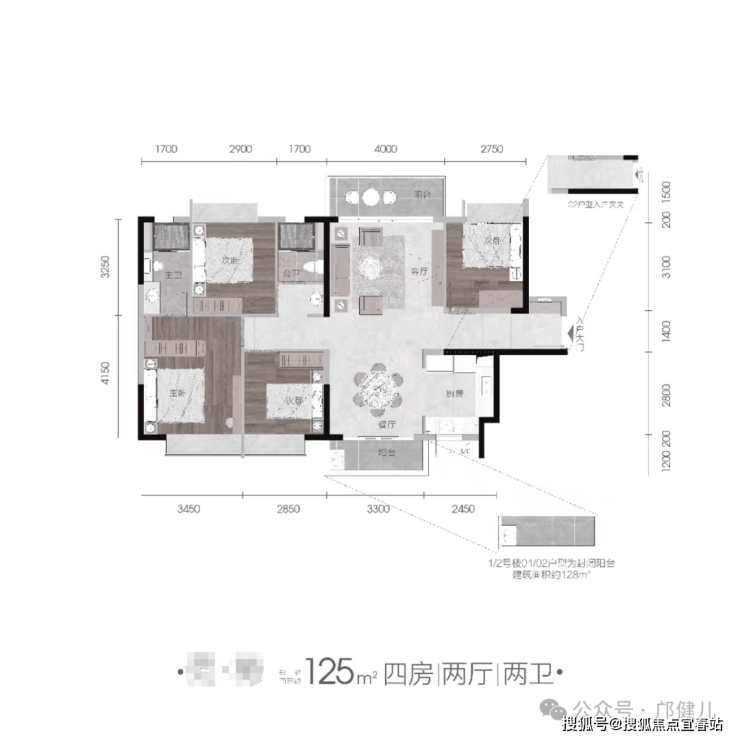刚需/改善型:如75~95㎡三房、110~130㎡四房,主打高利用率、通透设计。
