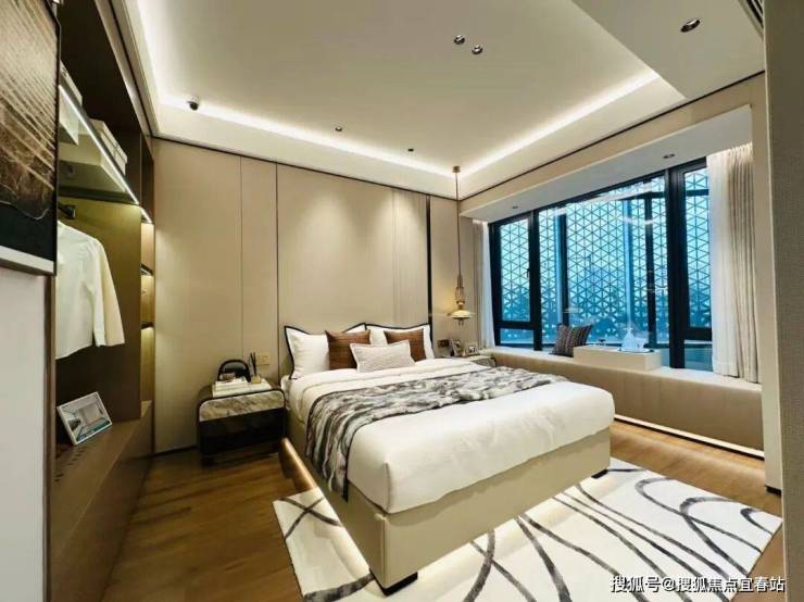 主卧方面,不是目前最流行的270度飘窗采光,但卫生间做到了不直接对着大床位置,设计较为合理。