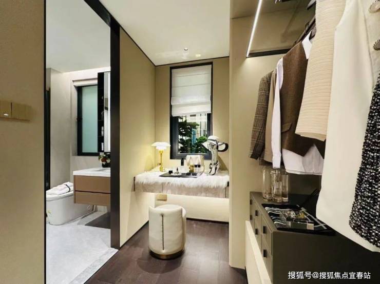 主卧面积约27㎡,配备全明衣帽间和环幕飘窗。