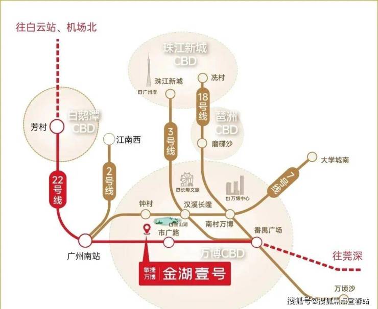 01交通配套 项目附近有22号线(已开通)及26号线(规划中)双地铁交汇,约800米到达,1站番禺广场、2站万博中心,3站琶洲CBD、4站珠江新城。自驾方面,可通过市广路、金山大道快速接驳新光快速、华南快速。