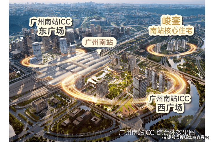 项目位于广州南站东广场侧,4高铁+4城际+4地铁的配置,堪称华南轨道交通“天花板”: