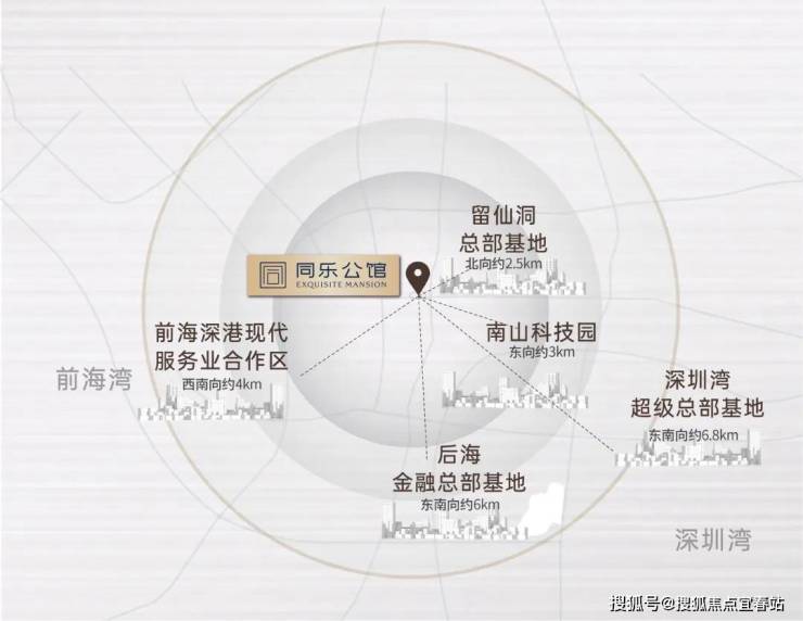 看下图,同乐公馆东面是南山科技园,西面是前海,南面是后海、深圳湾,北面是西丽留仙洞。