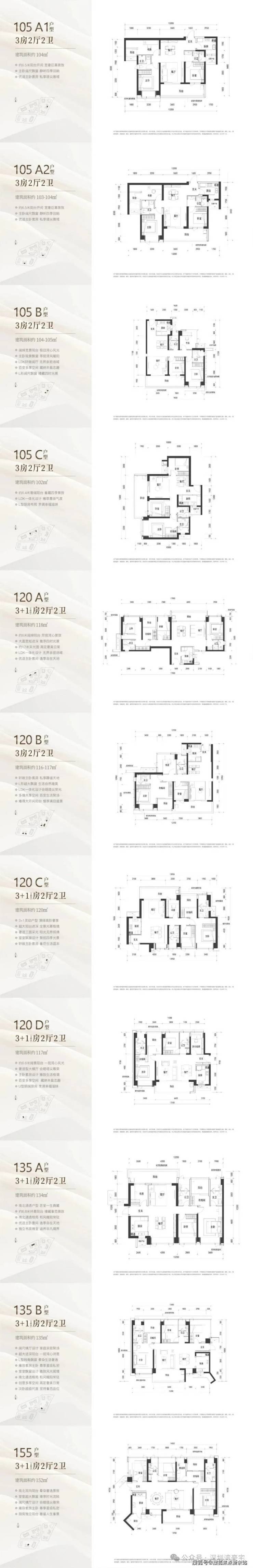 105/120/135--155平(三至四房)
