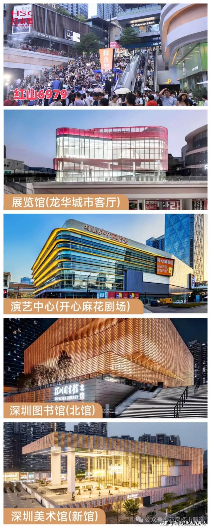 4栋公寓、3栋约5万平办公楼、1栋约1.1万平酒店(万豪旗下精品酒店MOXY)、约6.5万平沉浸开放式街区(200+品牌商家)、约1.2万平演艺中心(开心麻花剧场)、约4536平展览馆(龙华城市客厅)、约7.2万平深圳图书馆(北馆)、约6.6万平深圳美术馆(新馆),均已开业,自带上万人消费客群!