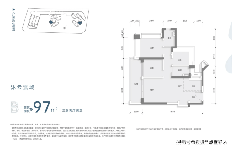 建面约97㎡三房两卫户型:布局方正,约3.8米的客厅开间,100寸投影幕布的最佳观影距离,从细节处满足当代都市人对舒居生活的具体需求;约6.5m阔景阳台,拥有超大采光面。