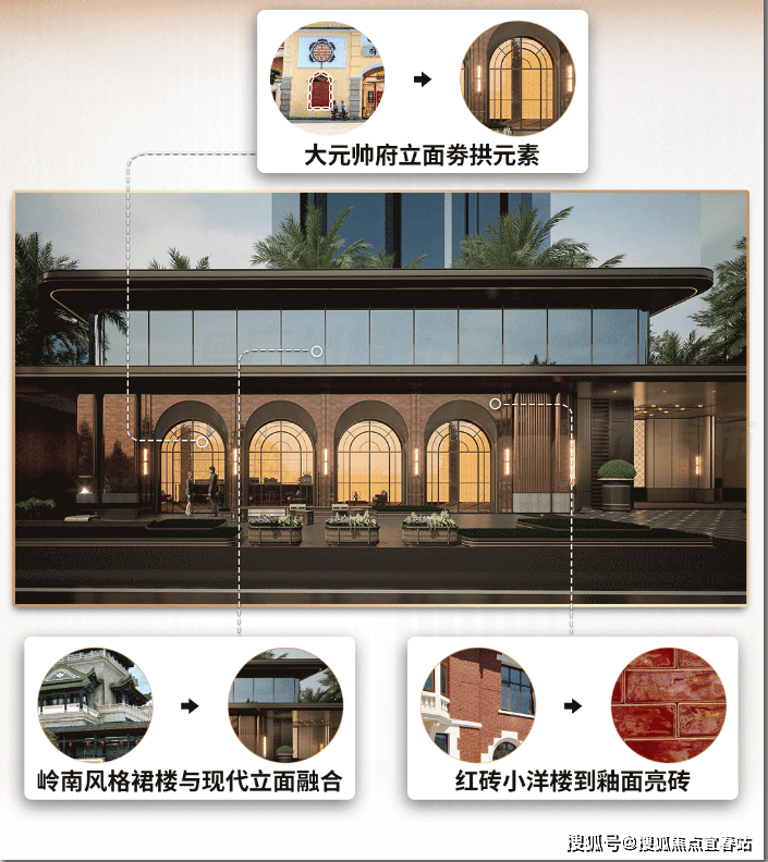 取自百年大元帅府立面的劵拱元素,广州人来到第一眼就会有亲切感。