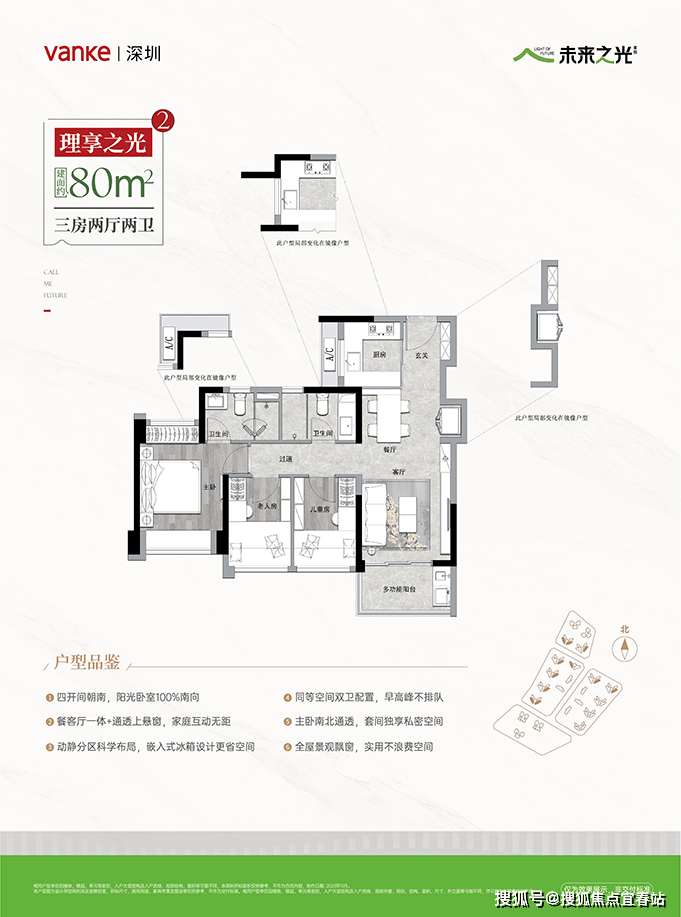 建面约80㎡A户型3房2卫