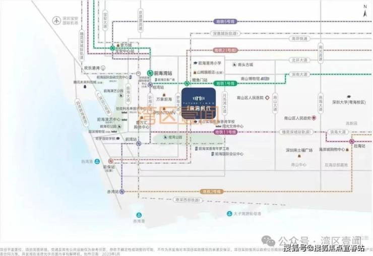 轨道方面,项目距离地铁站为1号线鲤鱼门站约720米,距离5号线、9号线前湾站约900米,1/5/11号三条地铁线交汇。