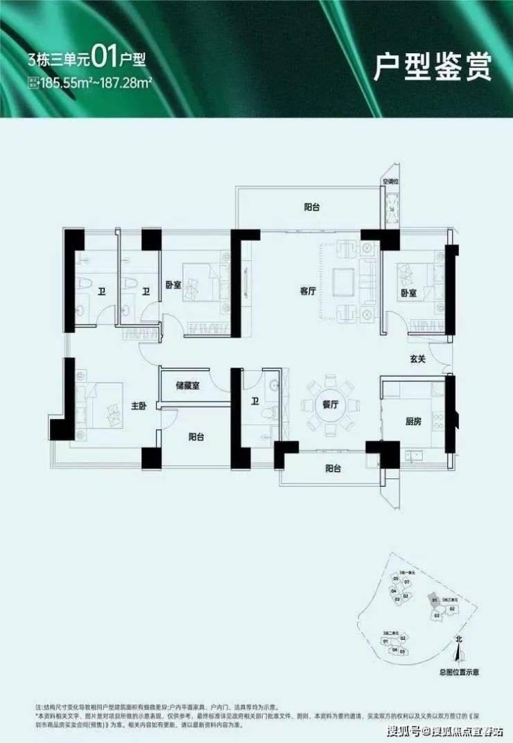 汇城茗院的户型设计以实用性和舒适性为主。目前推出的户型主要为约116平方米的3+1户型,使用率较高。户型布局合理,空间利用率高,满足了不同家庭的需求。此外,项目还有更大面积的户型可供选择,如195平方米的4+1房,适合对居住空间有更高要求的家庭。户型设计上,注重采光和通风,餐客双厅贯通阳台,拥有良好的视野和景观。