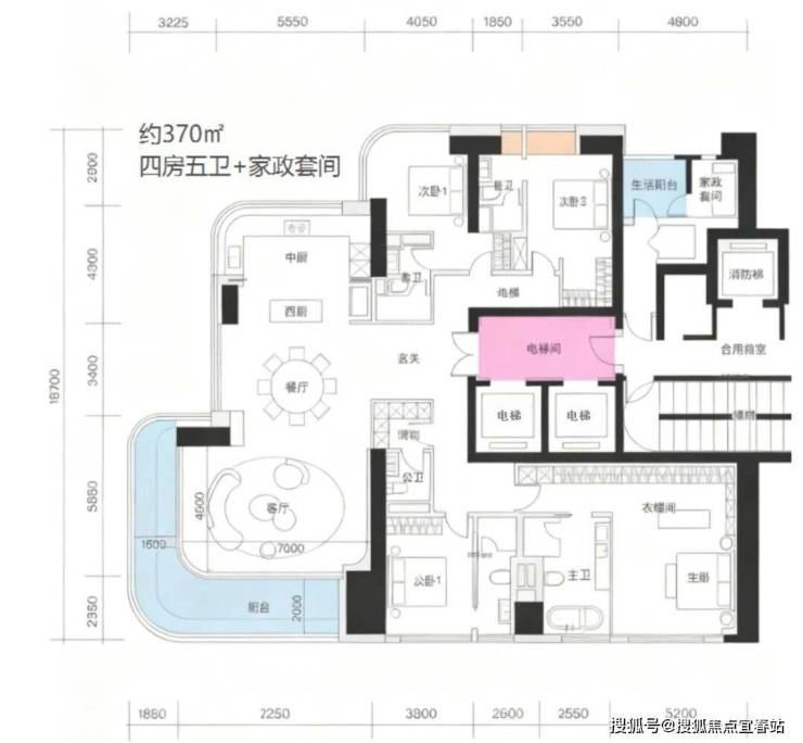 一层两户,奢适大平层:约370㎡的阔绰尺度,保障居住舒适度与私密感。
