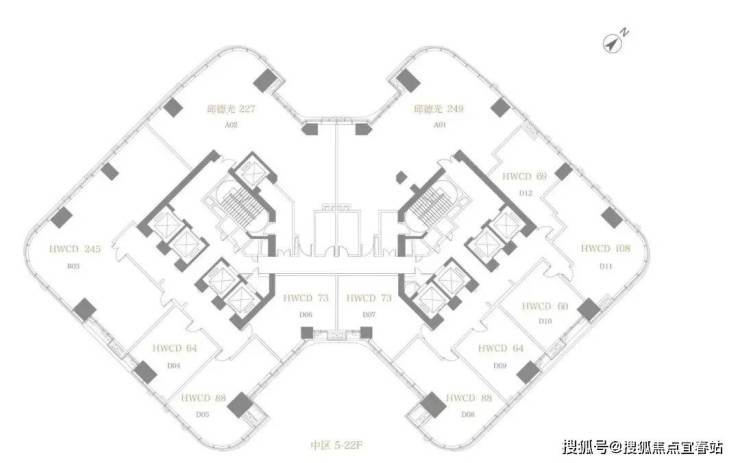 方胜纹双核心筒的设计使得整栋建筑更加高效和私密,并实现了双专梯电梯入户,为塔尖人群高效的工作和私密的生活而服务。转角处曲线设计,拓宽了整个建筑界面,使得建筑拥有270°转角无柱开放式观景视野。是塔尖人群拥揽深港的极佳观景台,足以盛放您帷幄城市的雄心。