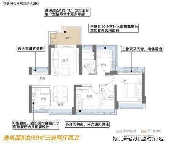 ●深圳少有的建面约89㎡3房2卫户型,客餐厅、主卧南北通透,前后无遮挡;