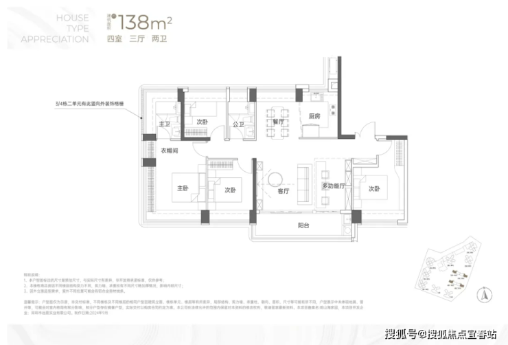 :楼王户型,南北双阳台,客厅开间达 4.2 米,主卧套配备独立衣帽间与卫浴,270° 环幕山景,视野无遮挡,定义改善人居标杆。