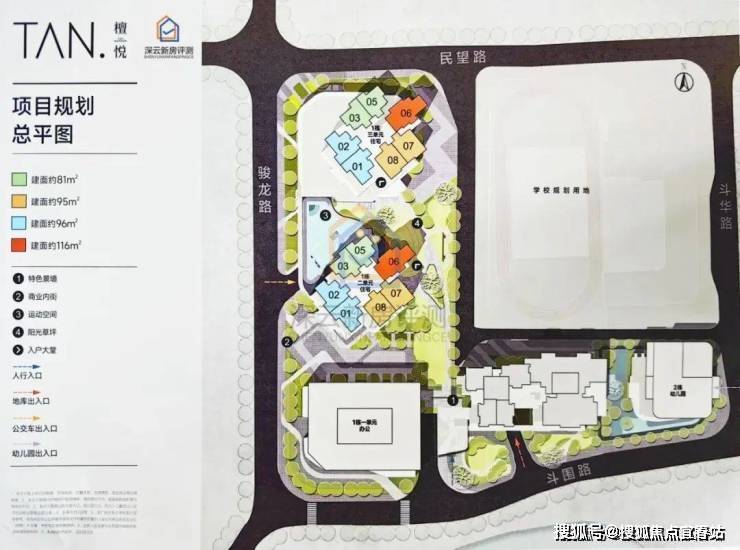 檀悦府,总占地面积约1.6万㎡,总建筑面积约19万㎡,计容建筑面积约14.1万㎡,容积率8.82,绿化率40.12%,共由4栋32-47层高住宅+1栋33层办公组成,其中1栋1单元办公33F,1栋2/3单元商品房47F,1栋4单元住宅32F,1栋5单元住宅46F,2栋配建1所6班制幼儿园。
