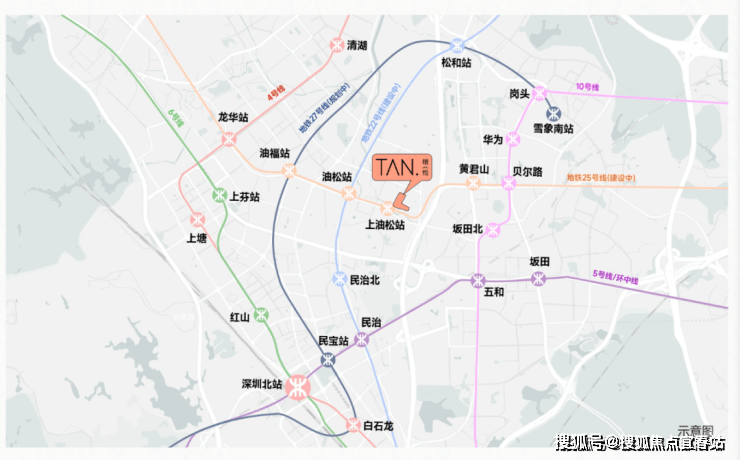 交通配套:项目周边靠近布龙路,五和大道,珠三角环线高速等交通要道,家门口就有25号地铁线“上油松站”在建,深惠城际“民治北站”距离约2公里,目前距离最近的10号地铁线“坂田北站”距离约1.7公里。