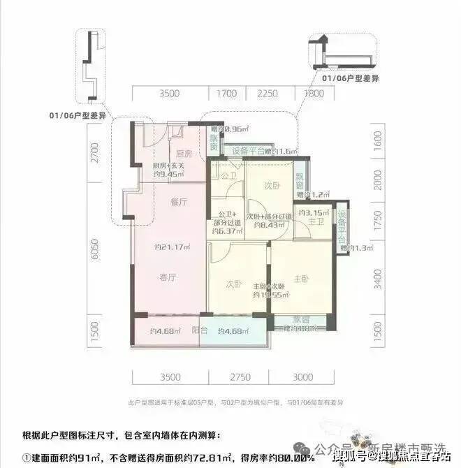 1㎡的3房2厅2卫,设计的是竖厅南北通透格局,客厅3.4米开间,3个卧室分别是3米/2.6米/2.2米的宽度,L型厨房,得房率:94.35%(包含赠送),阳台西北或东北朝向。