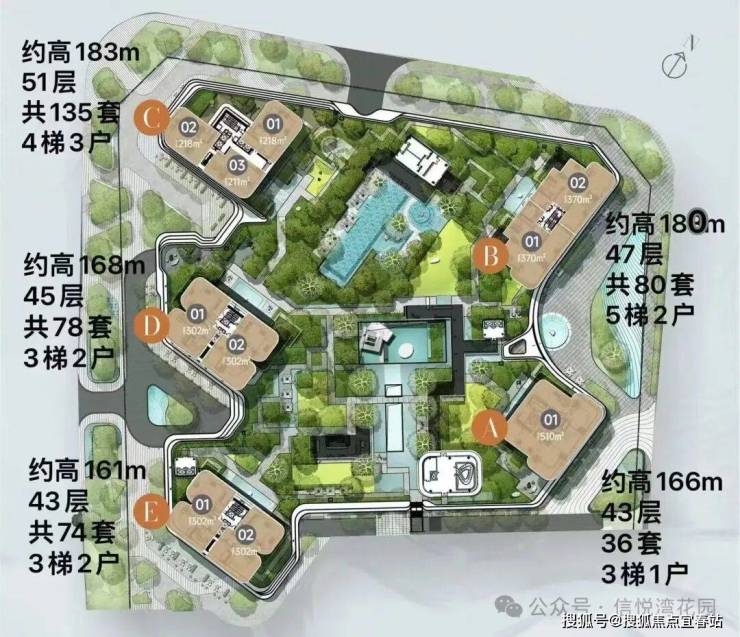 ◎项目一期规划共5栋超高层住宅