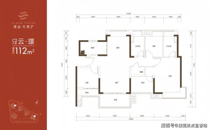 112㎡的4房2厅2卫,C1户型,仅4栋/5栋A单元/7栋的05号房才有,设计的是竖厅南北通透格局,客厅3.9米开间,餐客厅一体化设计,4个卧室分别做到了主卧22.44㎡/次卧9.9㎡/次卧8.95㎡/次卧7.85㎡(含墙体飘窗),U型厨房还带1个小生活阳台,卫生间干湿分离,得房率:79.88%(不含赠送),阳台主朝西南向。