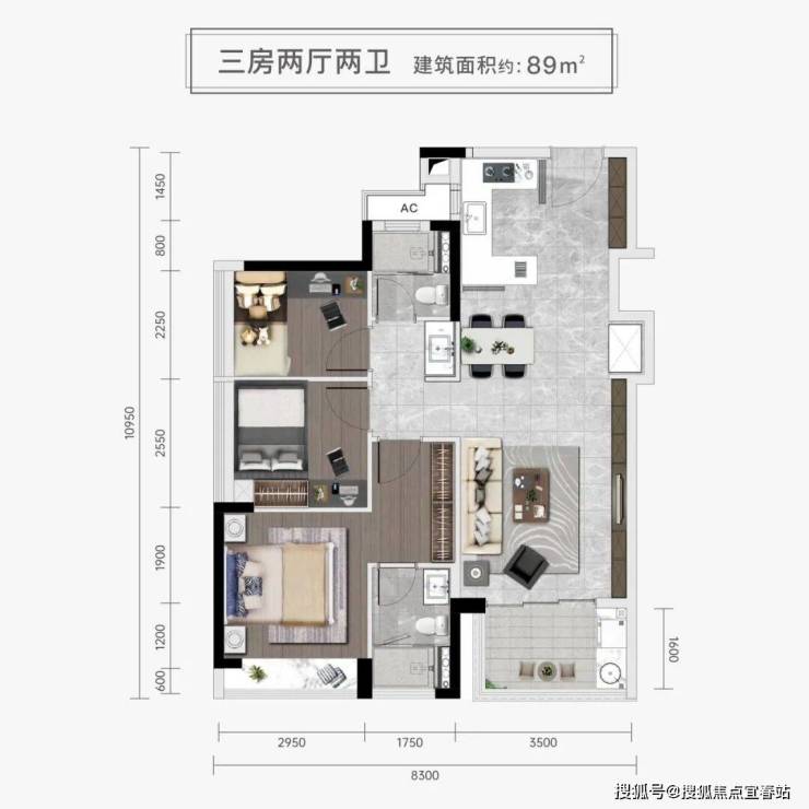 (三房两厅两卫)89平