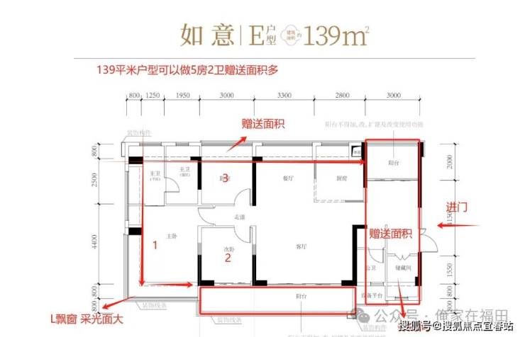 0【5户型3房2卫 可以做5房2卫 赠送面积多】