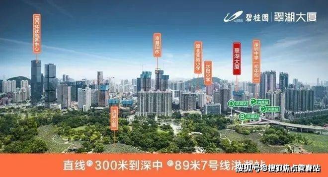 【碧桂园翠湖大厦】深圳稀有的双地铁口物业,约89米洪湖站,约380米田贝站,3号、7号超级地铁线,轻松换乘,通达深圳全城。