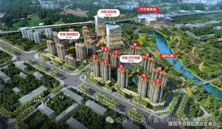 项目位于万宁市主城区,高铁站对面,紧邻约300亩滨河公园,坐拥万宁最大商业综合体——华亚欢乐城,商超、美食、潮店等近100个品牌商家聚集,距离文化商业广场约1公里,距离万宁第二小学约500米,醇熟配套赋能美好生活。