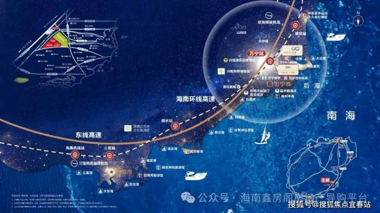 项目毗邻万宁高铁站,距离汽车站约3公里,距离环岛高速入口约2.3公里,立体交通路网,擎引高效便捷出行,接驳岛内外无界生活。