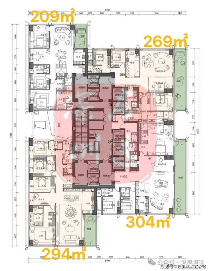 ③超高区58F起(200米以上)是约500-700㎡顶级大平层;